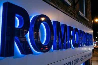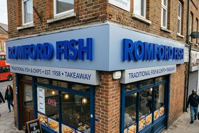 The Romford Fish project focused on delivering a clean and highly visible shopfront suitable for a busy high-street environment.
